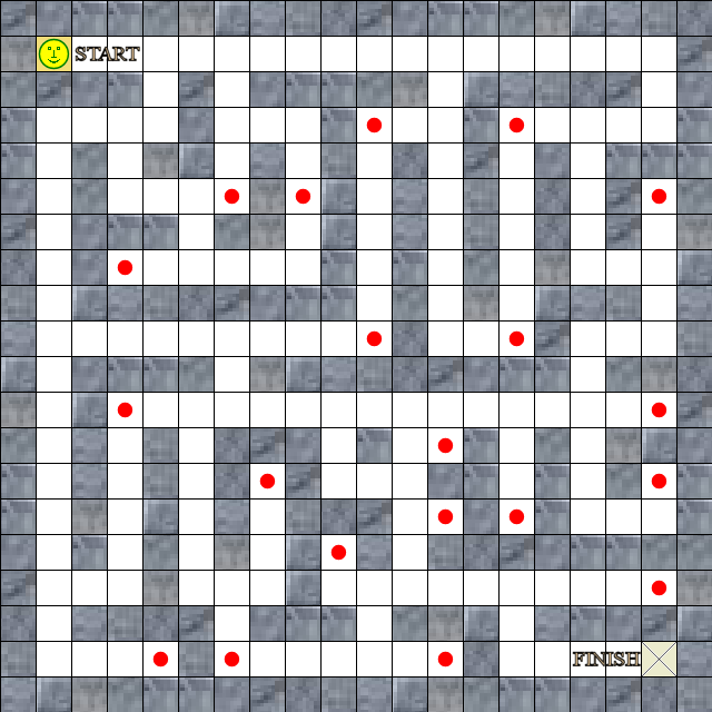 Then, using the Items and Avatars Tileset and the Items Layer, I put 20 red Power Pills on the map, giving me the following "Level 00 Items":